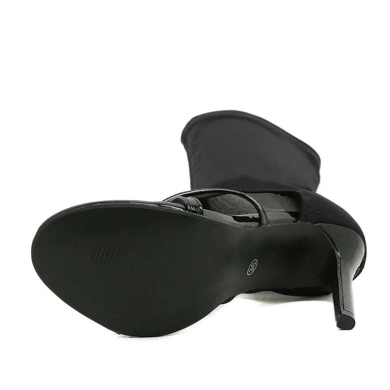 Step into bold style with these ankle-high, hollow-out stretch boots featuring a daring peep toe and super high thin heels. Designed to fit true to size, they combine sexy appeal with a comfy PU insole and rubber outsole for steady wear. Slip on these handmade beauties for a standout look that elevates any outfit.