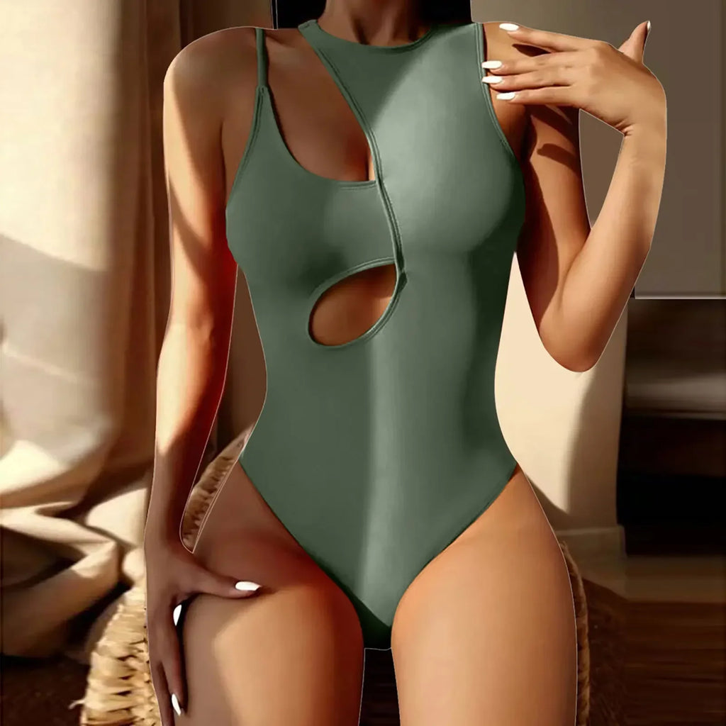 Trendy Hollow Out Camisole Solid Color Swimsuit
