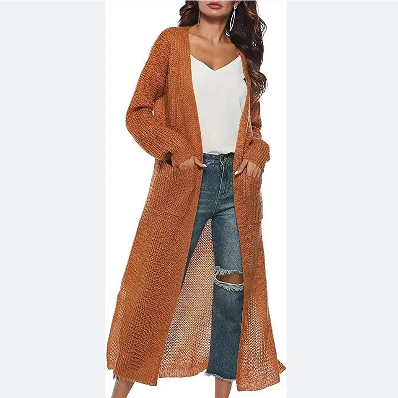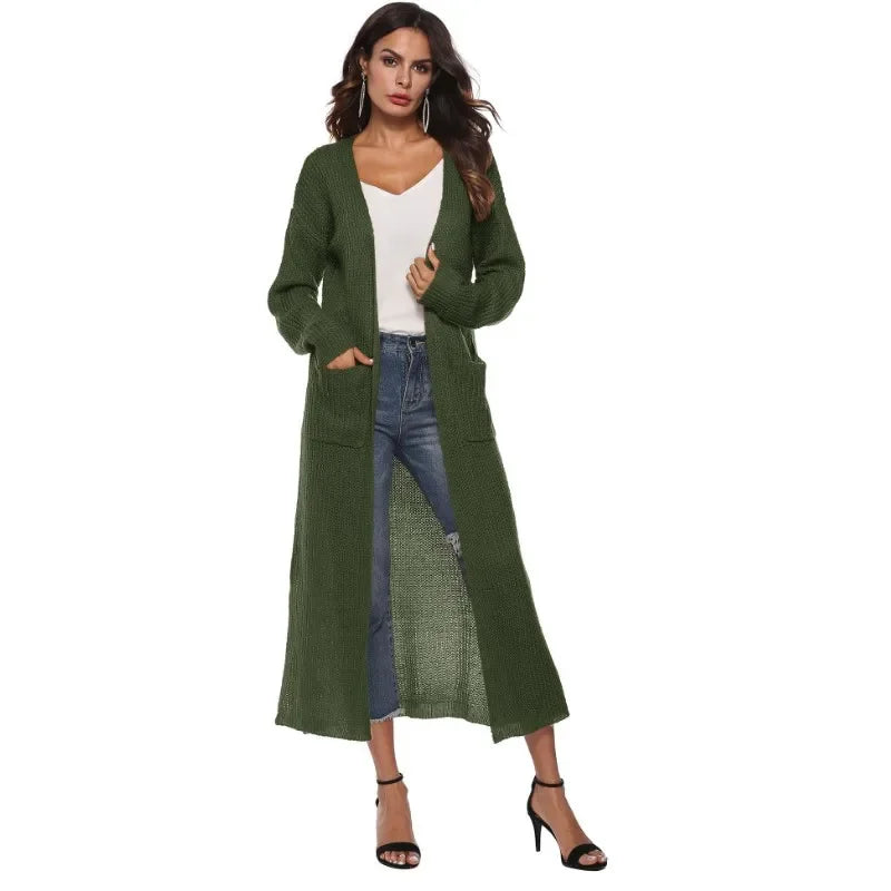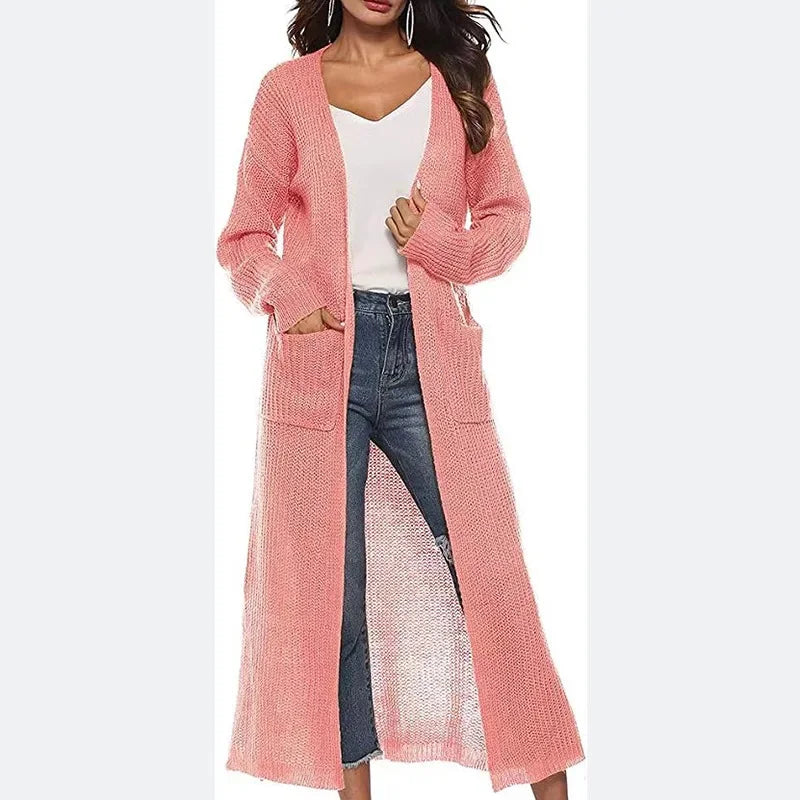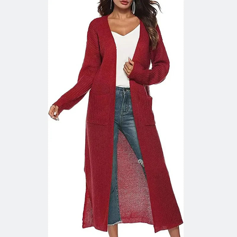 Effortlessly chic and unapologetically bold, this loose-knit cardigan is your go-to piece for making a statement. Crafted from durable polyester with a satisfying stretch, it drapes beautifully in a relaxed fit that works for everyone. The full-length sleeves and V-neckline create an instantly flattering silhouette, while the open front design lets you layer with confidence. Perfect for autumn and winter, this thick knit sweater pairs with everything and demands attention.