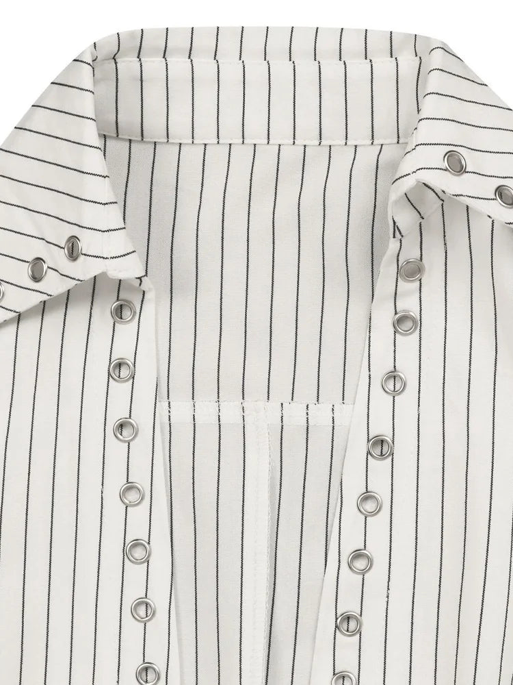 Turn heads with this fun, daring pin-striped blouse and shorts set. The slim-fit blouse features full sleeves, a turn-down collar, and lace-up details, paired with comfortable elastic waist shorts. Made from a lightweight synthetic fabric, this set is perfect for any season and keeps you looking bold and stylish.