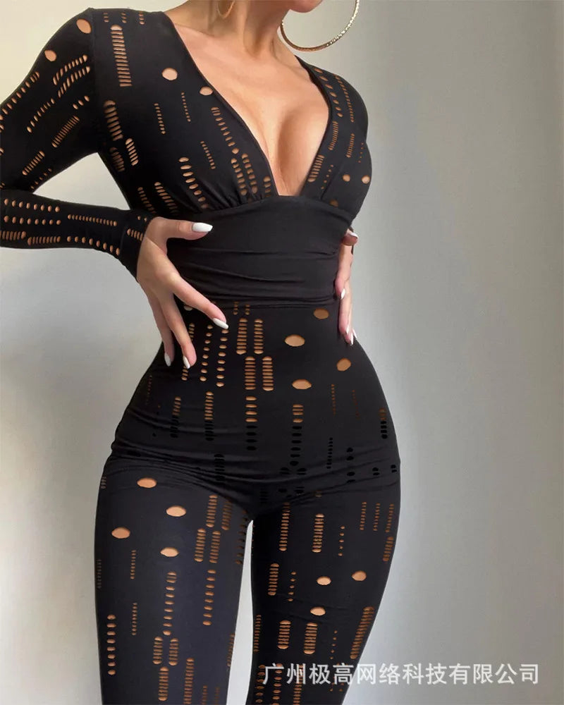 Trendy Long Sleeve Hollow Out Jumpsuit