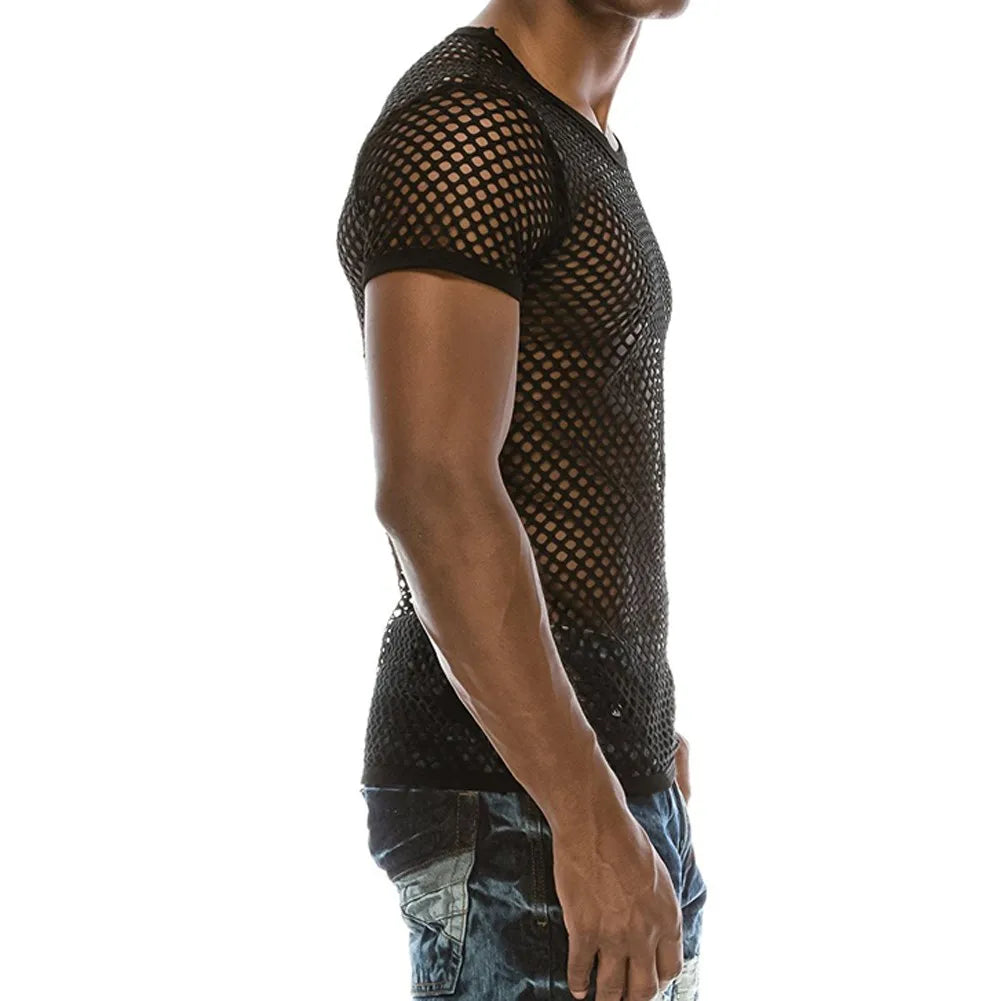 Mesh muscle pullover designed for the bold guy who refuses to blend in. This casual short-sleeve top features a striking turn-down collar and a daring zipper closure for instant edge. Crafted from a cotton-polyester blend with textured mesh detailing, it's perfect for spring trips and weekend adventures. Comfortable, versatile, and unapologetically cool.