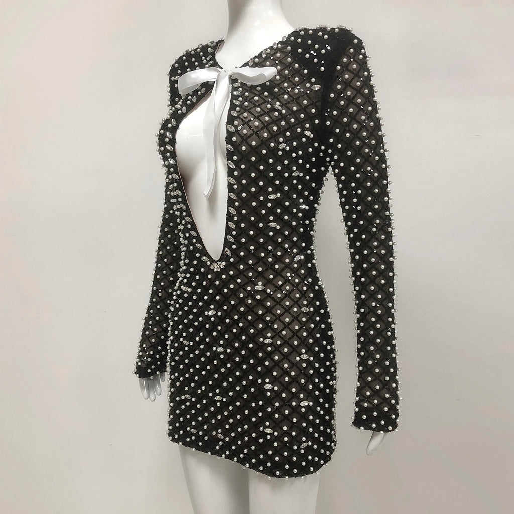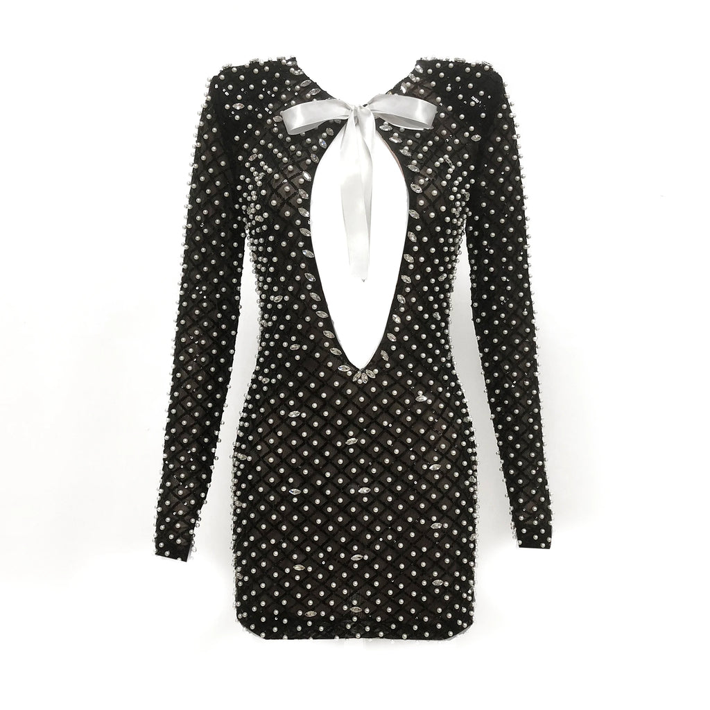 Make a statement in this striking black sequin mini dress. Featuring bold cut-out details and an O-neck design, it's crafted from a polyester-cotton blend with embroidered embellishments for added glamour. The fitted pencil silhouette flatters your figure while the full sleeves provide coverage. Perfect for parties and special occasions when you want to turn heads.